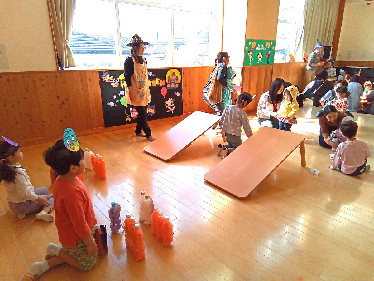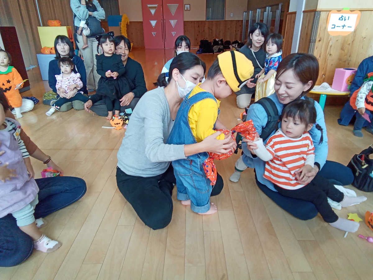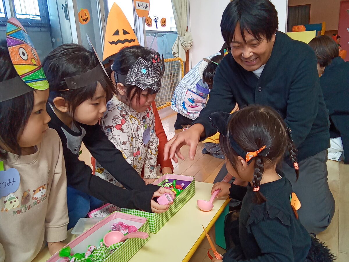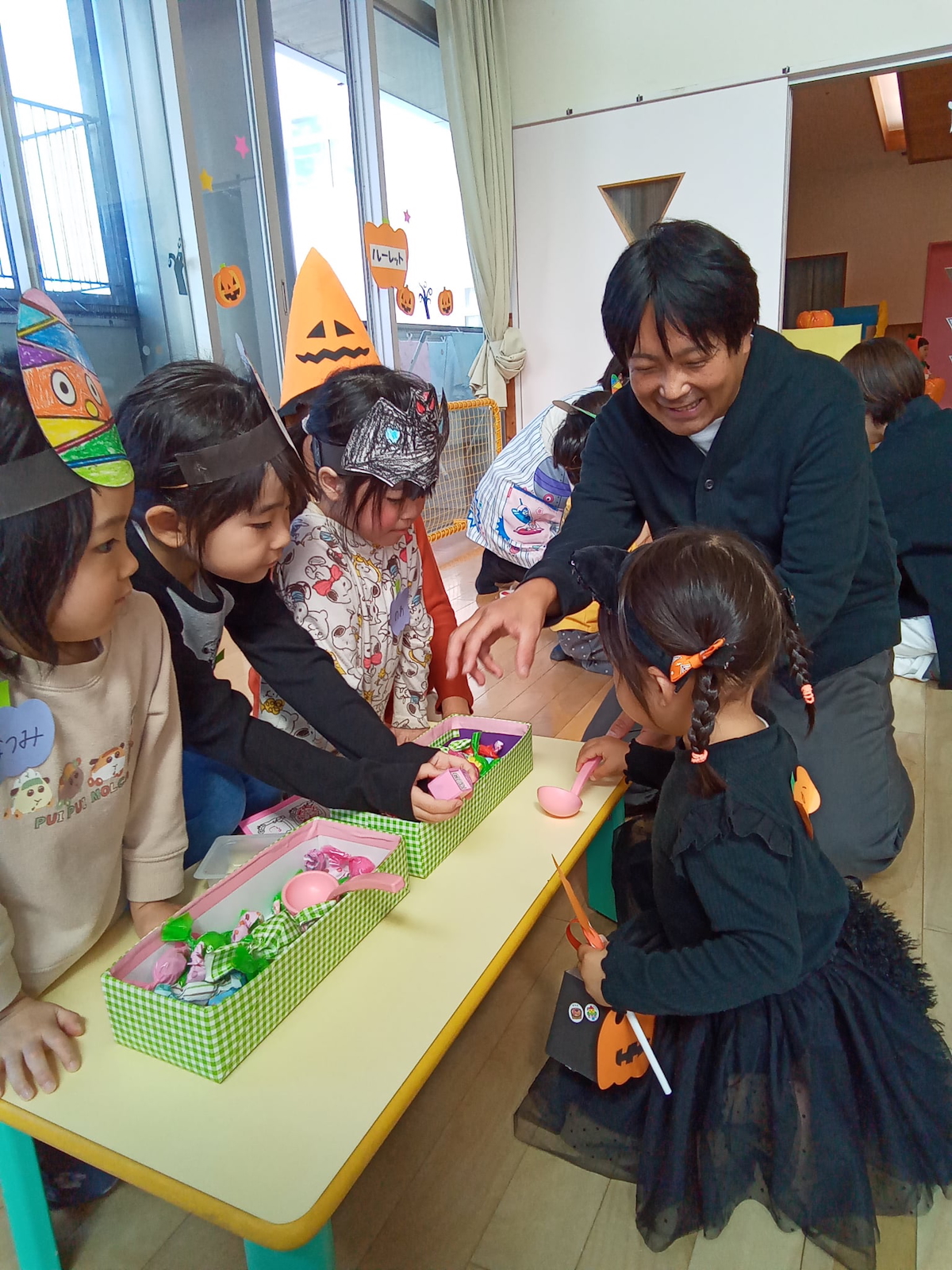 お知らせ レインボーキッズ ハロウィン 2025年10月24日 by ksdtadmin 保育所のホールで『ハロウィンパーティー』を行いました。保育所の一番大きな学年のぞう組さんがお手伝いに来てくれました。スタンプラリーでは、ぞう組さんがゲームの説明や仕掛け、また、優しく声を掛けてスタンプを押してくれました。スタンプラリーの他にもフォトコーナーがあり、思い出の1枚を撮っていました。最後は、ボランティアさん、ぞう組さん、レインボーキッズのみんなが仲良くなれるように大玉キャンディ送りと♪グーチョキパーでパンプキンのダンスで盛り上がりました。